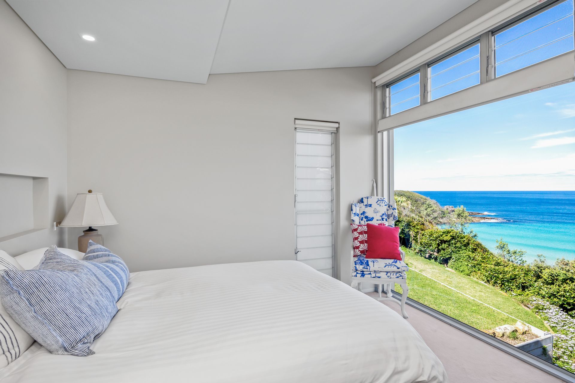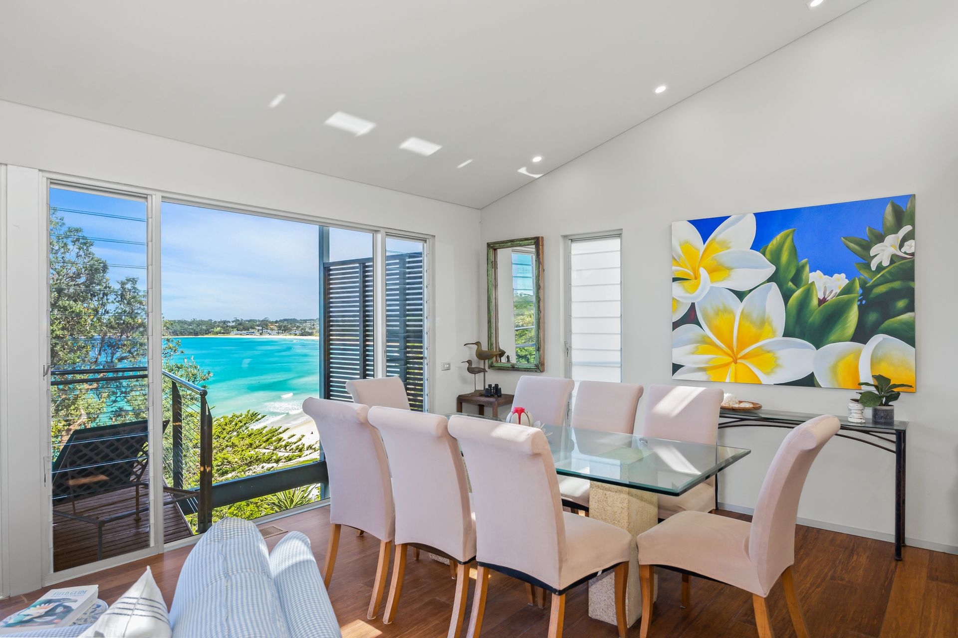 The light-filled, open-plan living and dining areas are framed by glass, offering ocean vistas from every room, including the master bedroom, so you can wake up to the stunning beauty of Mollymook Beach. Enjoy the front deck, where you can relax with morning coffee or an evening cocktail while taking in the endless ocean and inlet views.