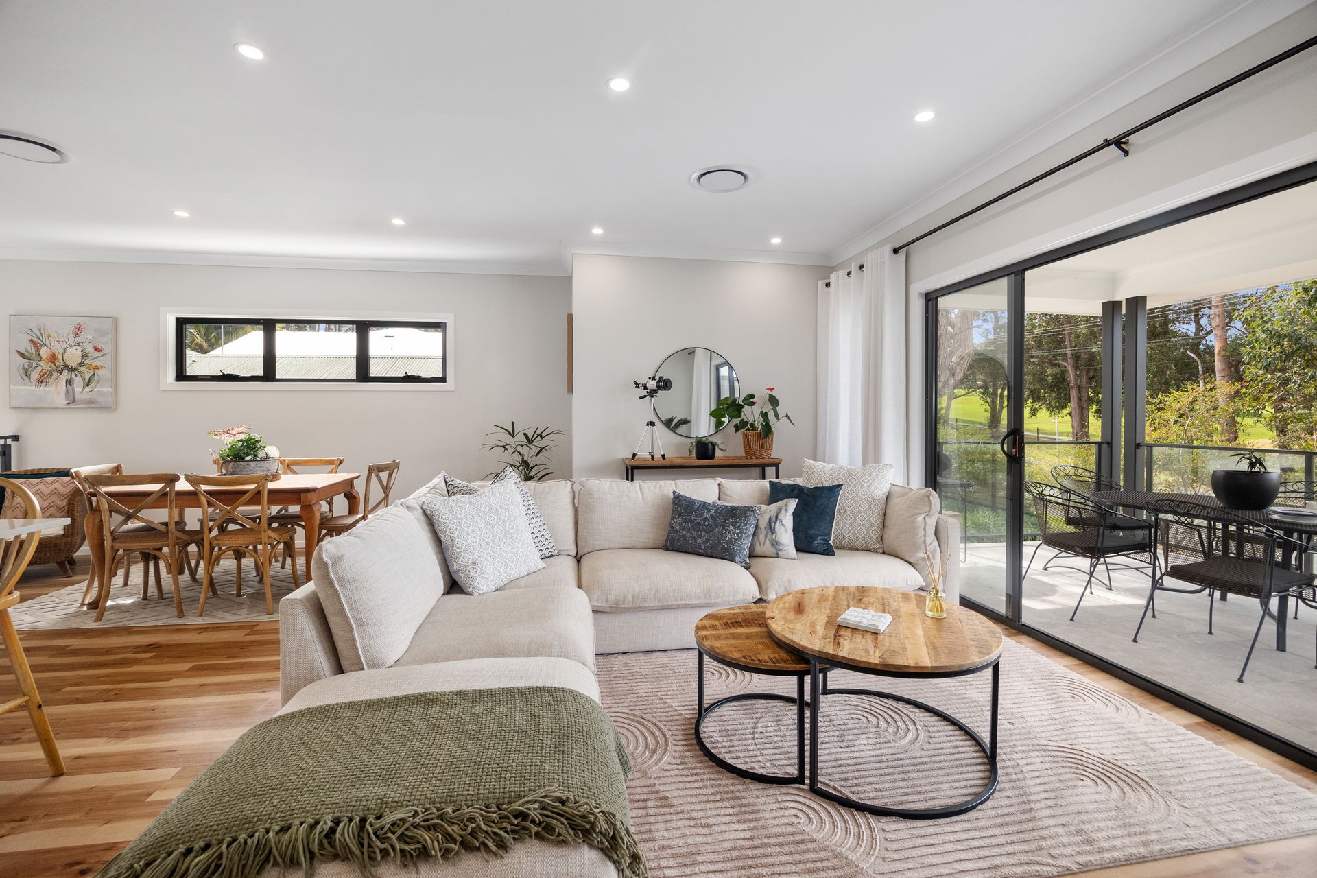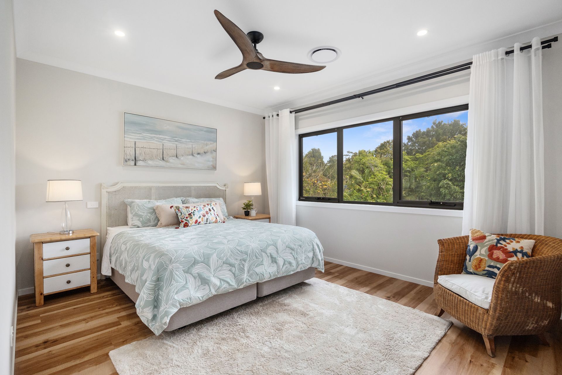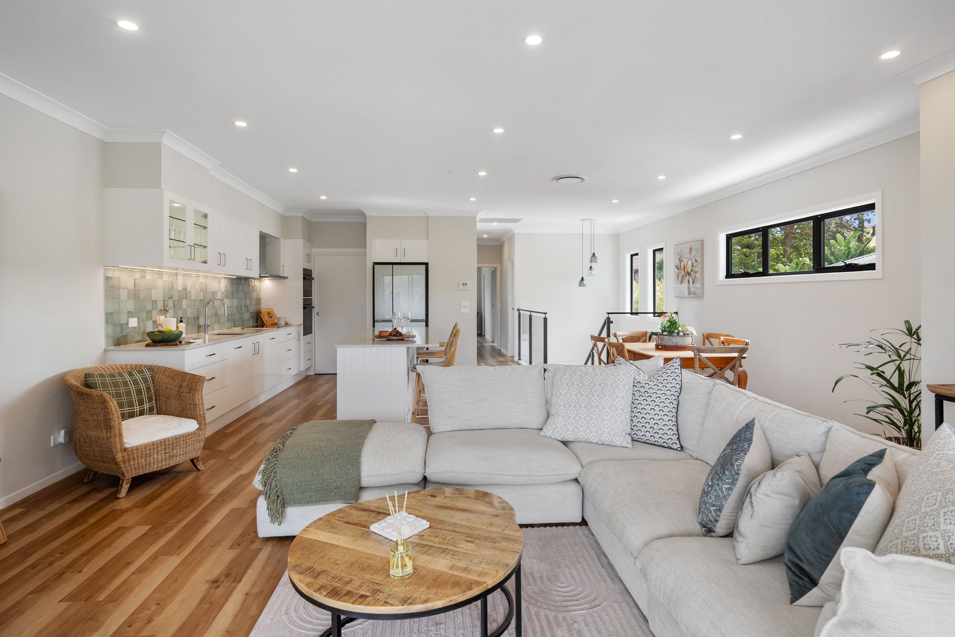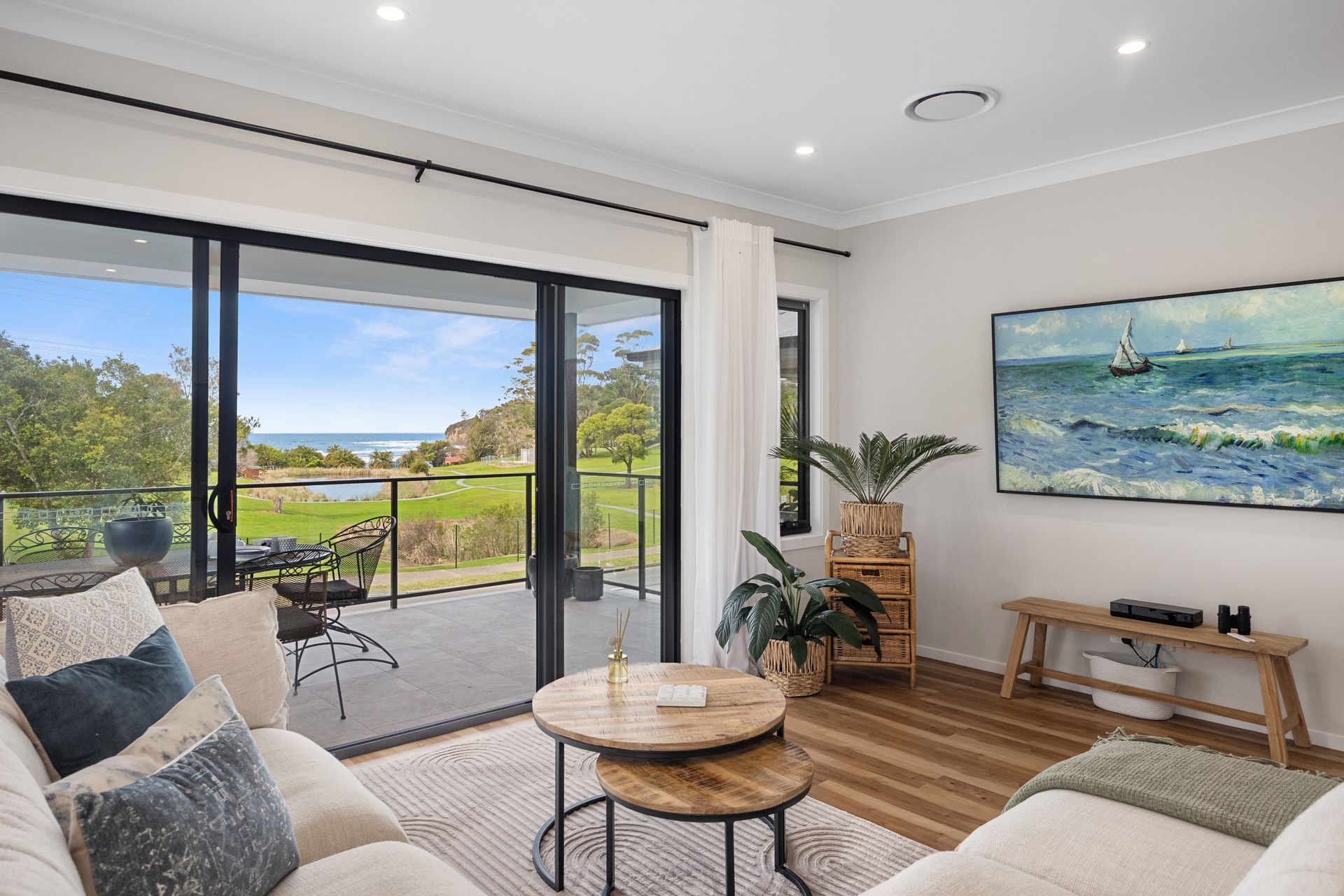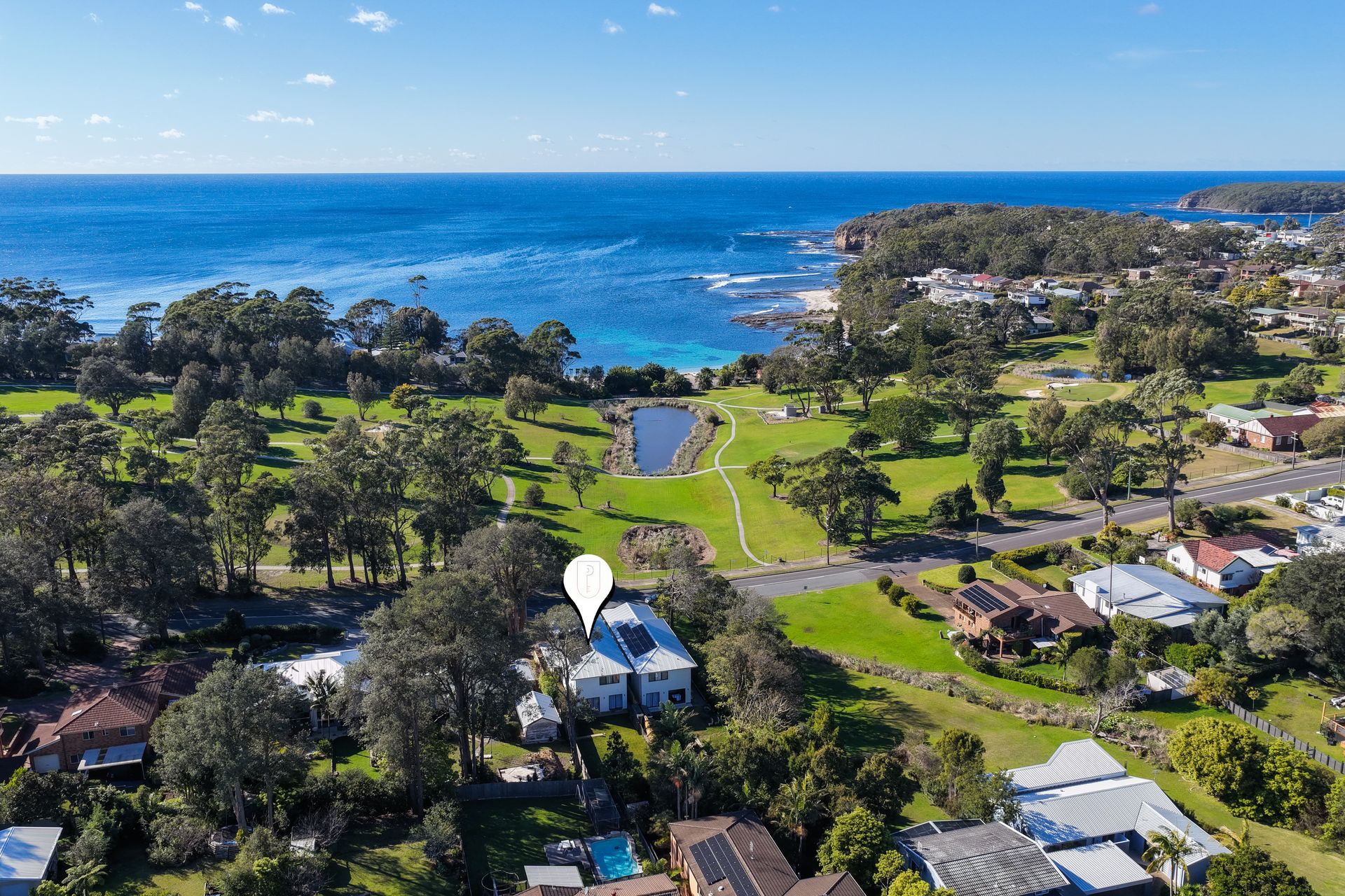 This spacious two-storey, four-bedroom home is ideally positioned directly opposite the Mollymook Golf Course and just a short stroll to the beach.