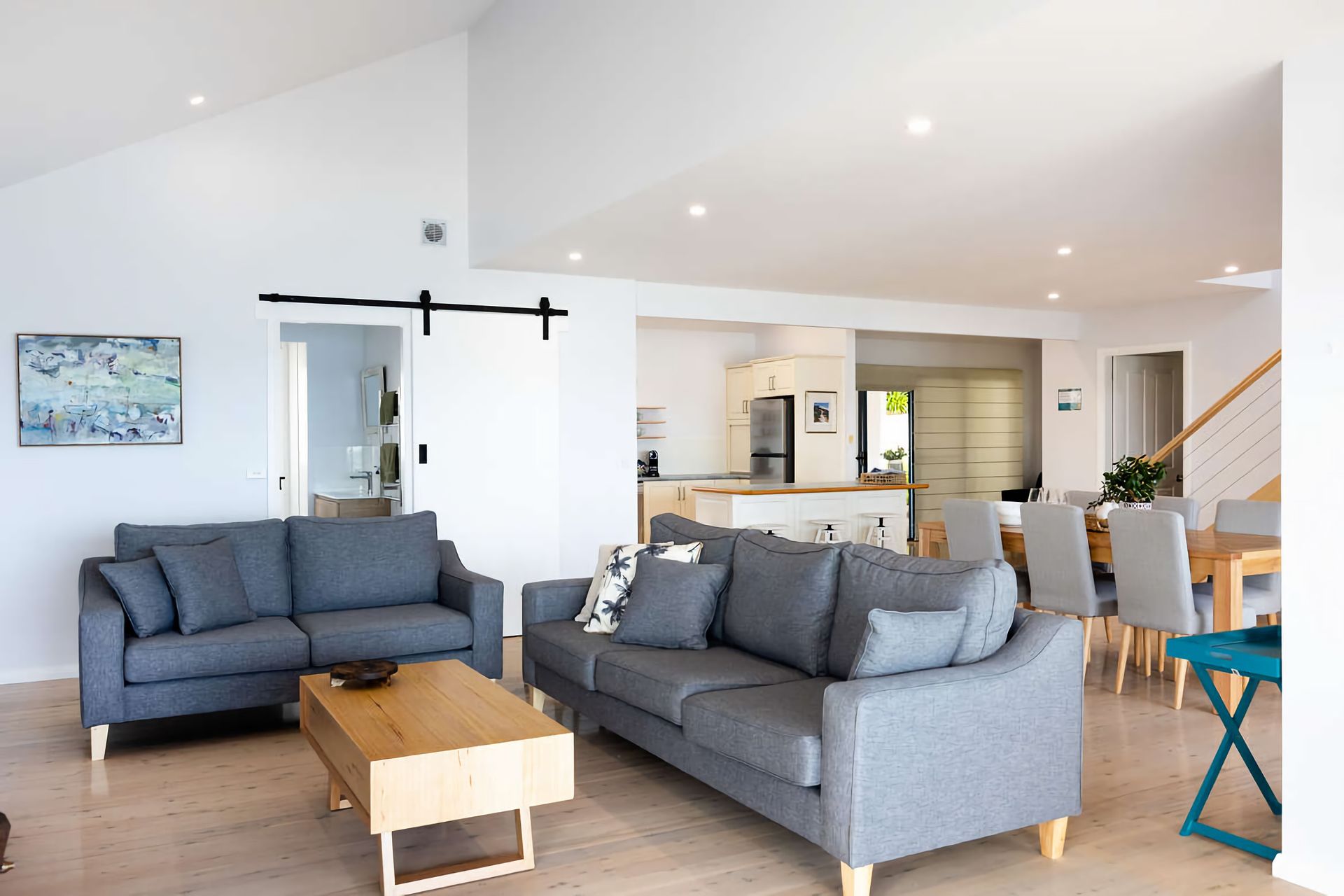 The floorplan is best suited for couples or small families. Please note the property is recommended for children 5 years and older due to features like open-tread hardwood stairs and showers. There is no cot or high chair on the premises.