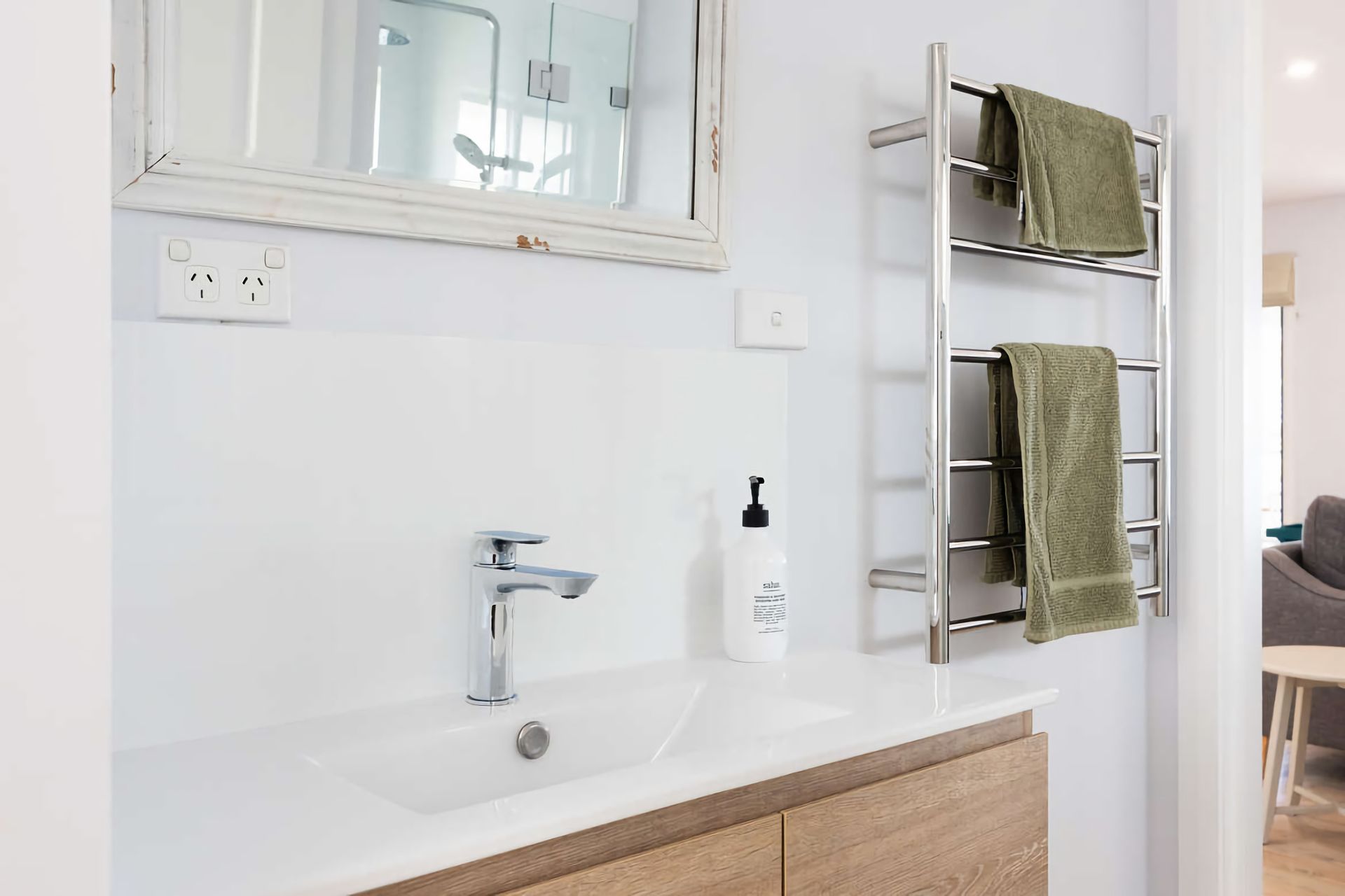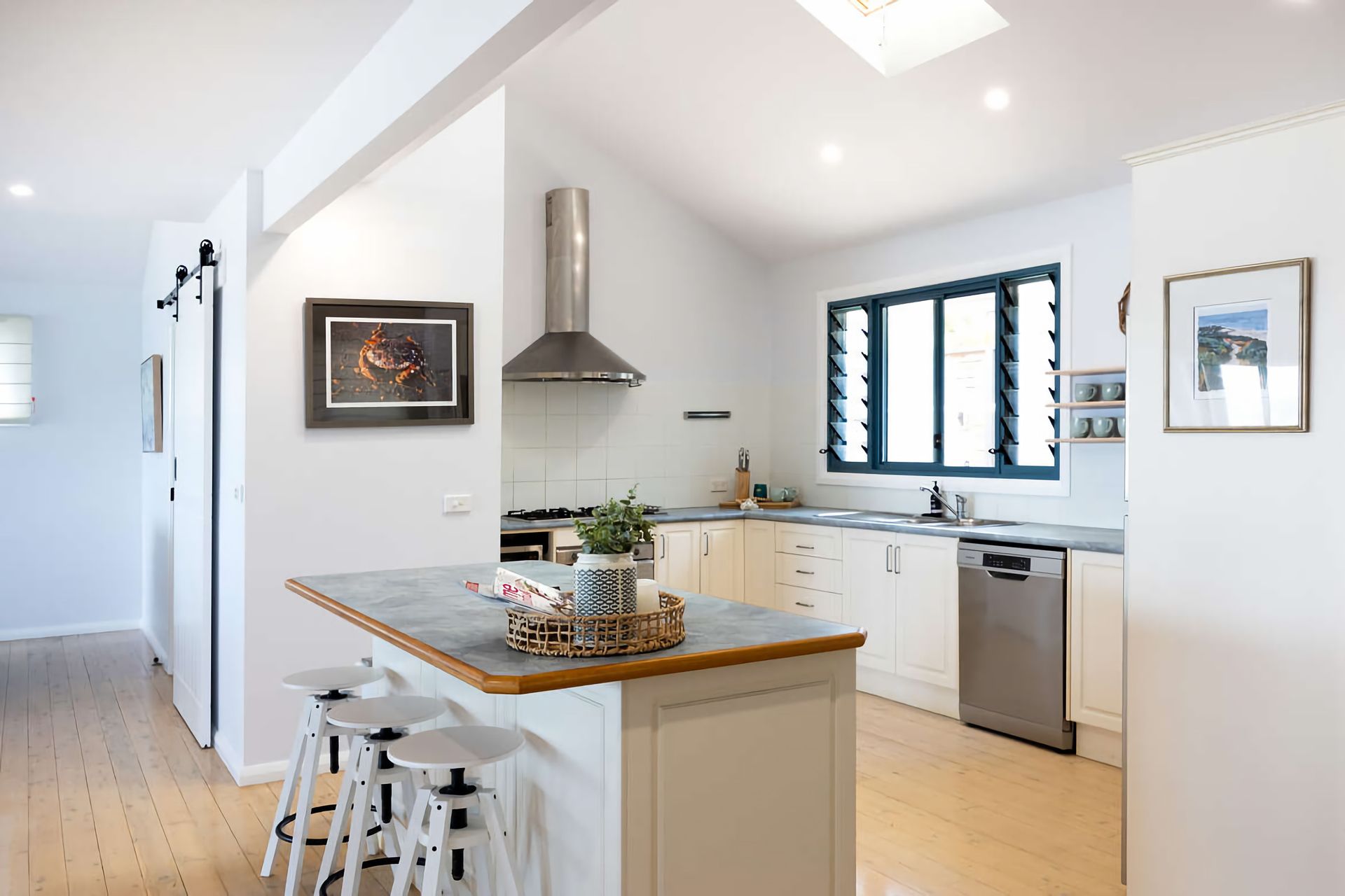 The fully equipped kitchen boasts a 900mm cooktop, dishwasher, microwave, Nespresso machine, and all necessary cooking equipment and small appliances. There's also a barbecue under shelter in the street-side forecourt. The large family bathroom includes a shower, separate toilet, and a laundry with a washing machine for guest use—all conveniently located on the main level.