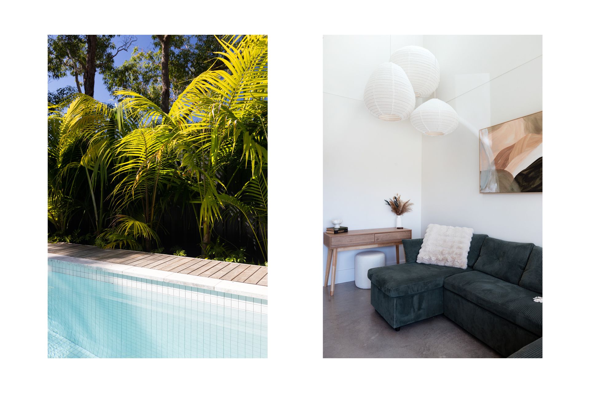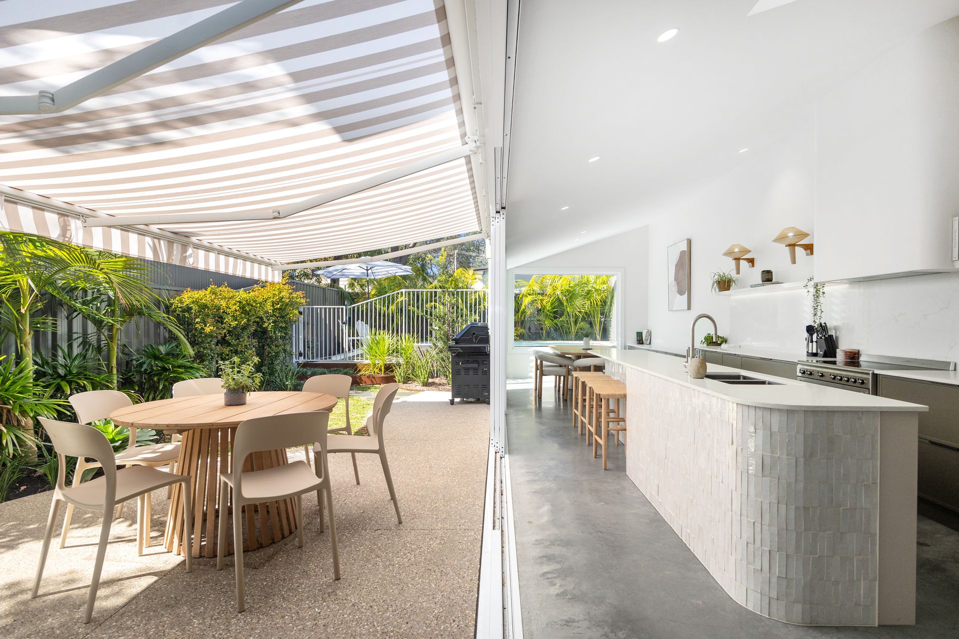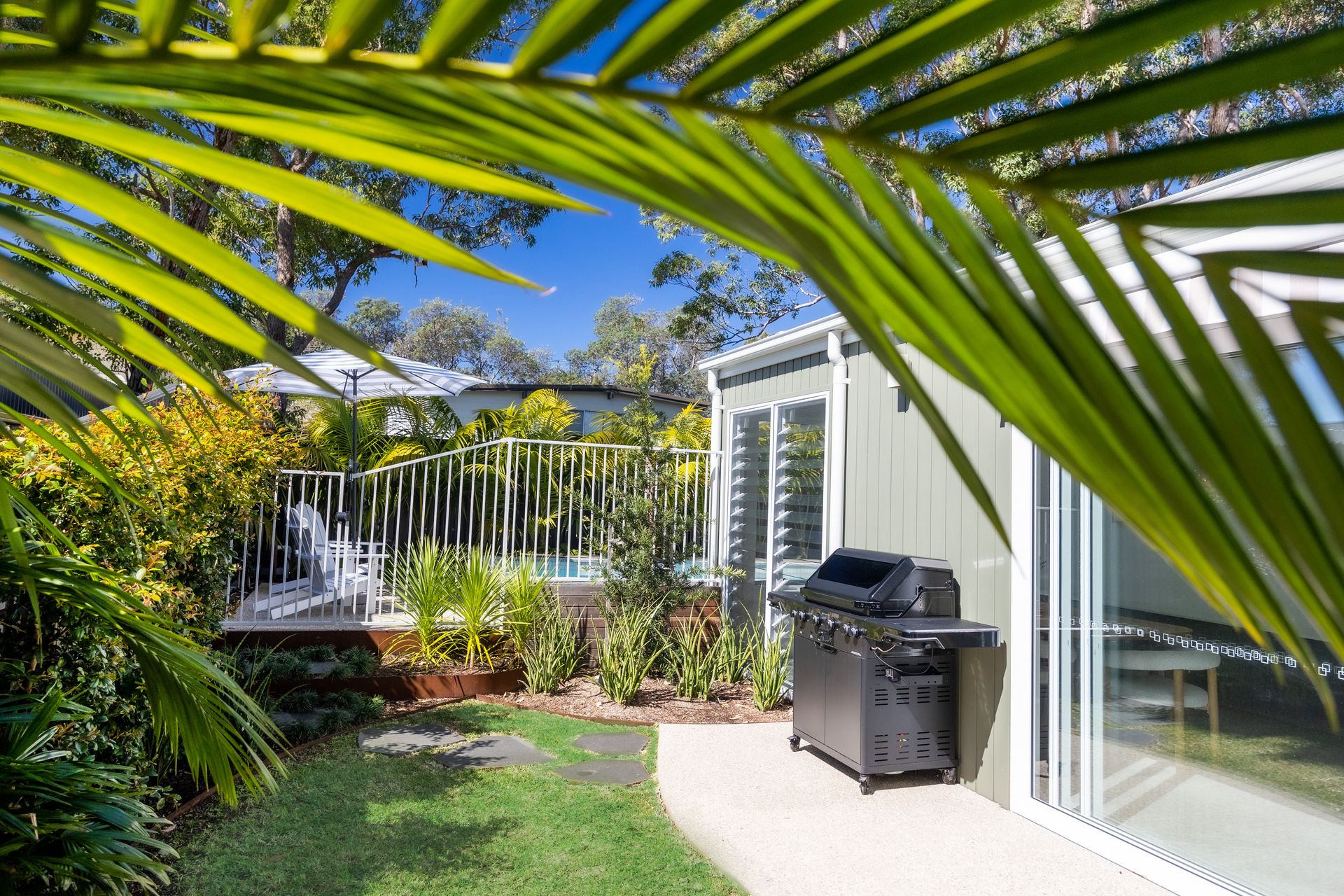 Guests will love the seamless flow from indoors to outdoors, with a stunning entertaining area and private mineral plunge pool set among tropical-inspired gardens.